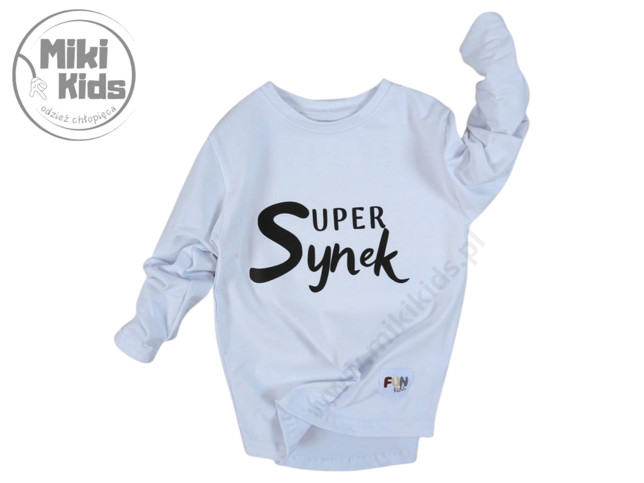 Longsleeve slim SUPER SYNEK / biały FUN KIDS