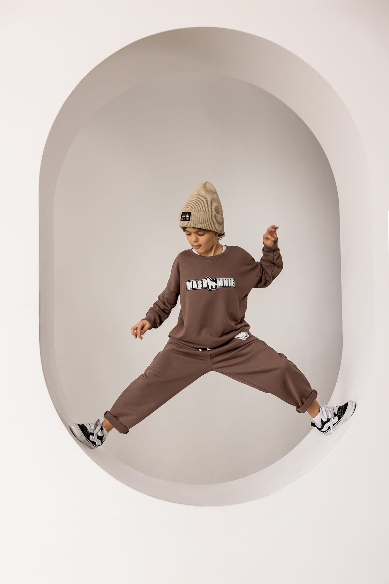 Spodnie dresowe MASHMNIE z naszywką / taupe